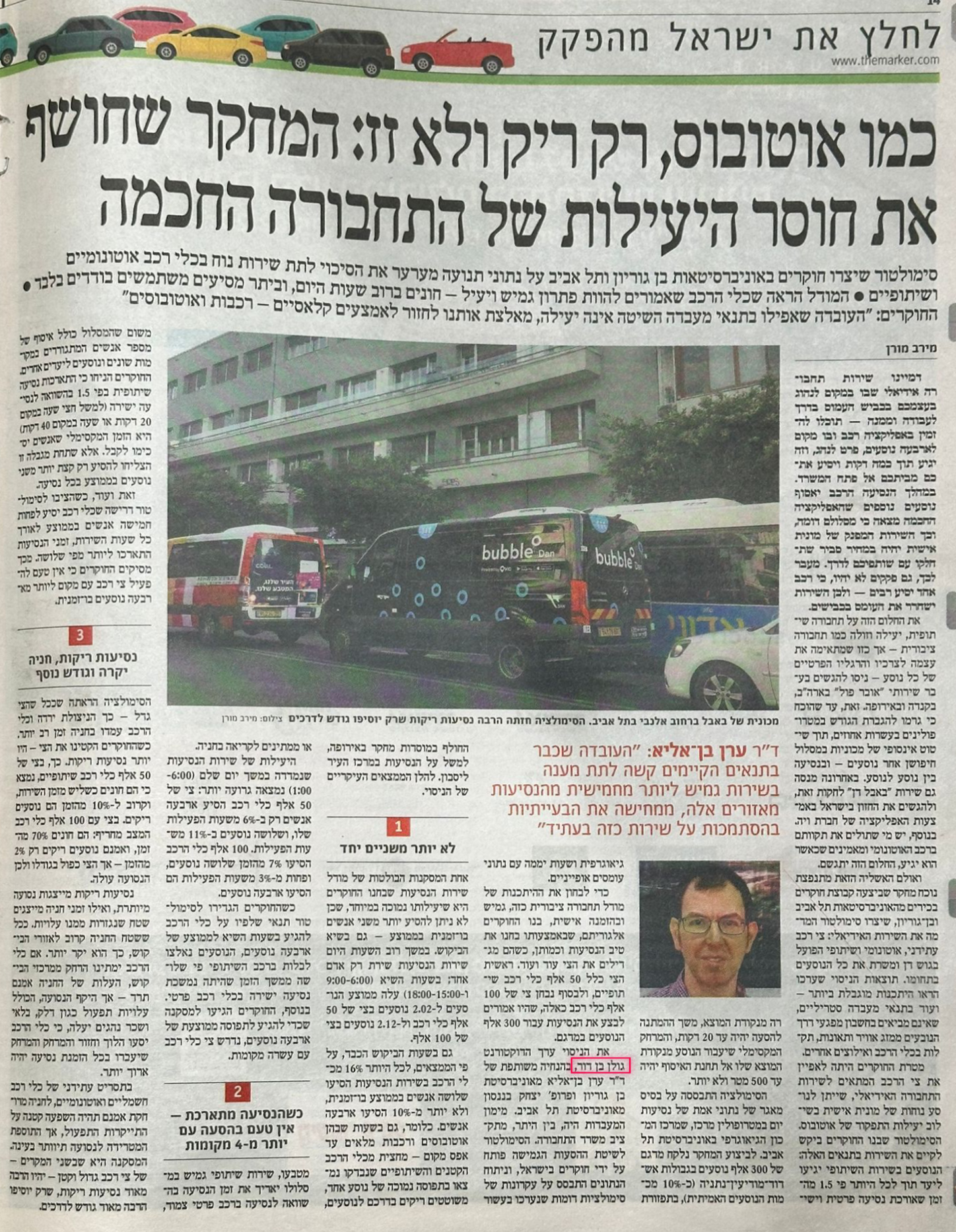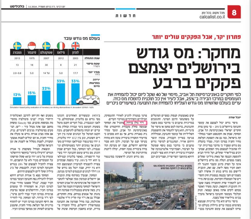 הערכת אסטרטגיות "המקל והגזר" לירושלים. הממצאים הראו כיצד אגרות גודש מייצבות את ההשפעה של רכבים אוטונומיים שיתופיים על השימוש בתחבורה ציבורית.